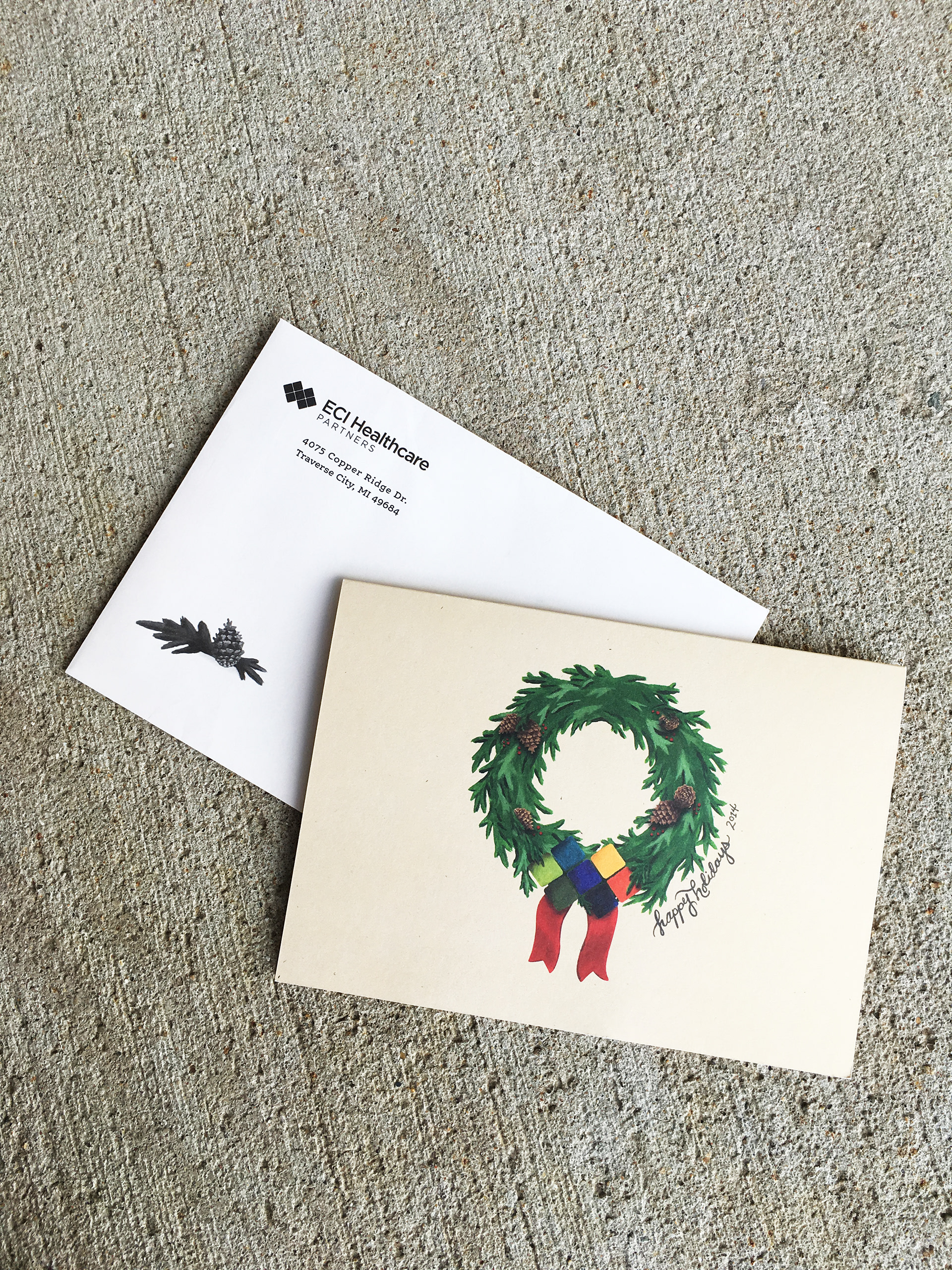 Custom, hand painted holiday cards, for a national staffing and management company.
