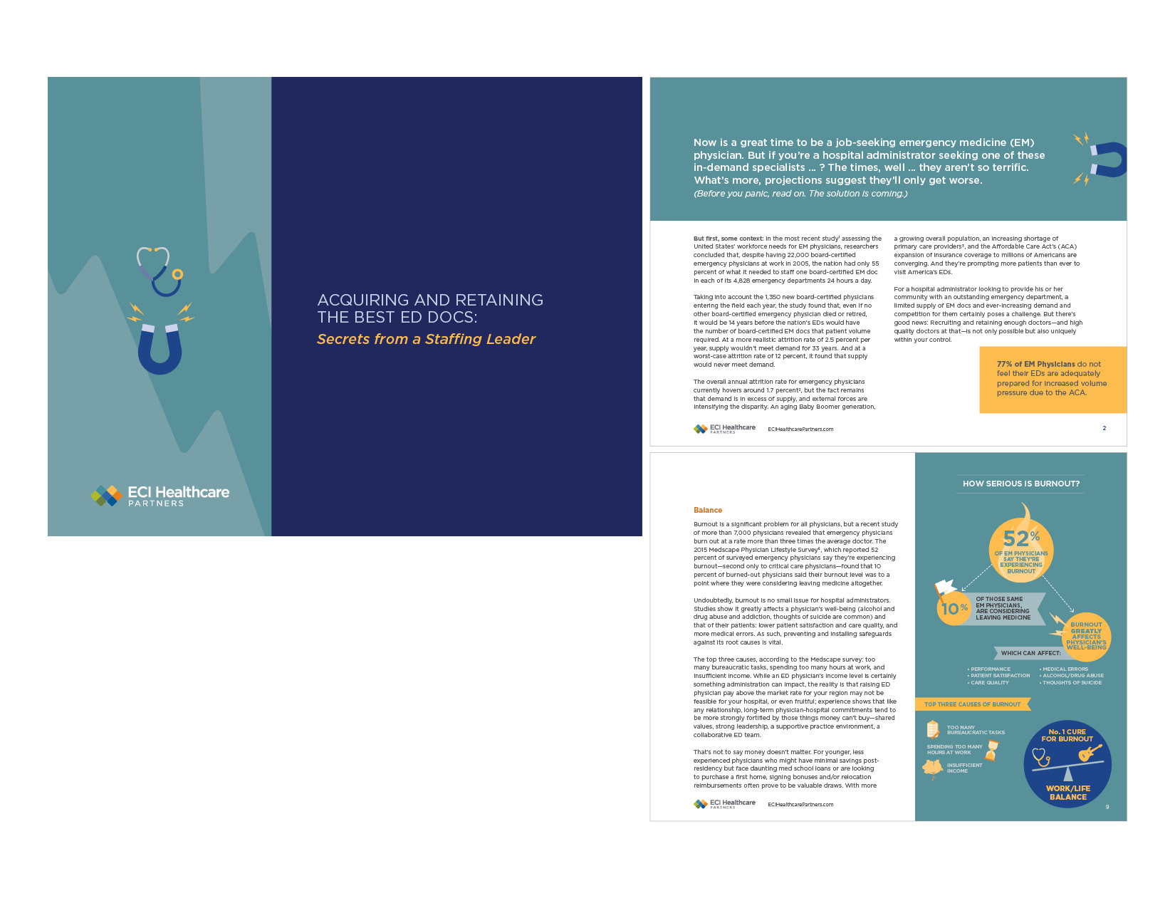 White paper designs built for healthcare executives, targeting custom content marketing campaigns.
